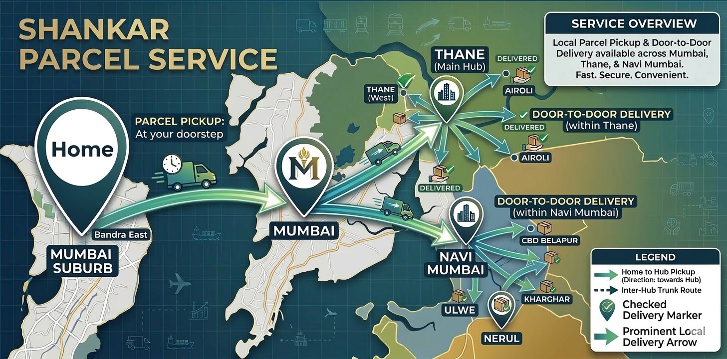 Shankar Parcel Services offers convenient door-to-door parcel pickup across Mumbai, Thane and Navi Mumbai. Customers can send parcels easily without visiting parcel offices.